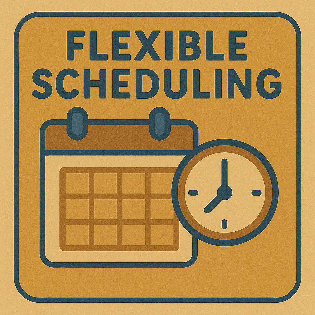 Our flexible scheduling options allow us to work around your timetable, making it convenient for you to access our services at a time that suits you best.
